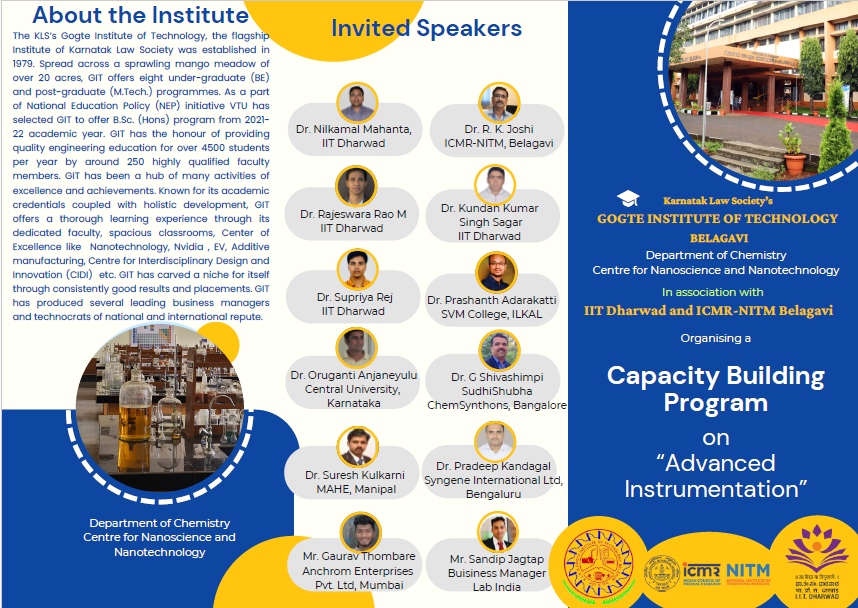 Dept. of Chemistry Centre for Nanoscience & Nanotechnology in association with IIT Dharwad and ICMR-NITM Belagavi presents Capacity Building Program on “Advanced Instrumentation”