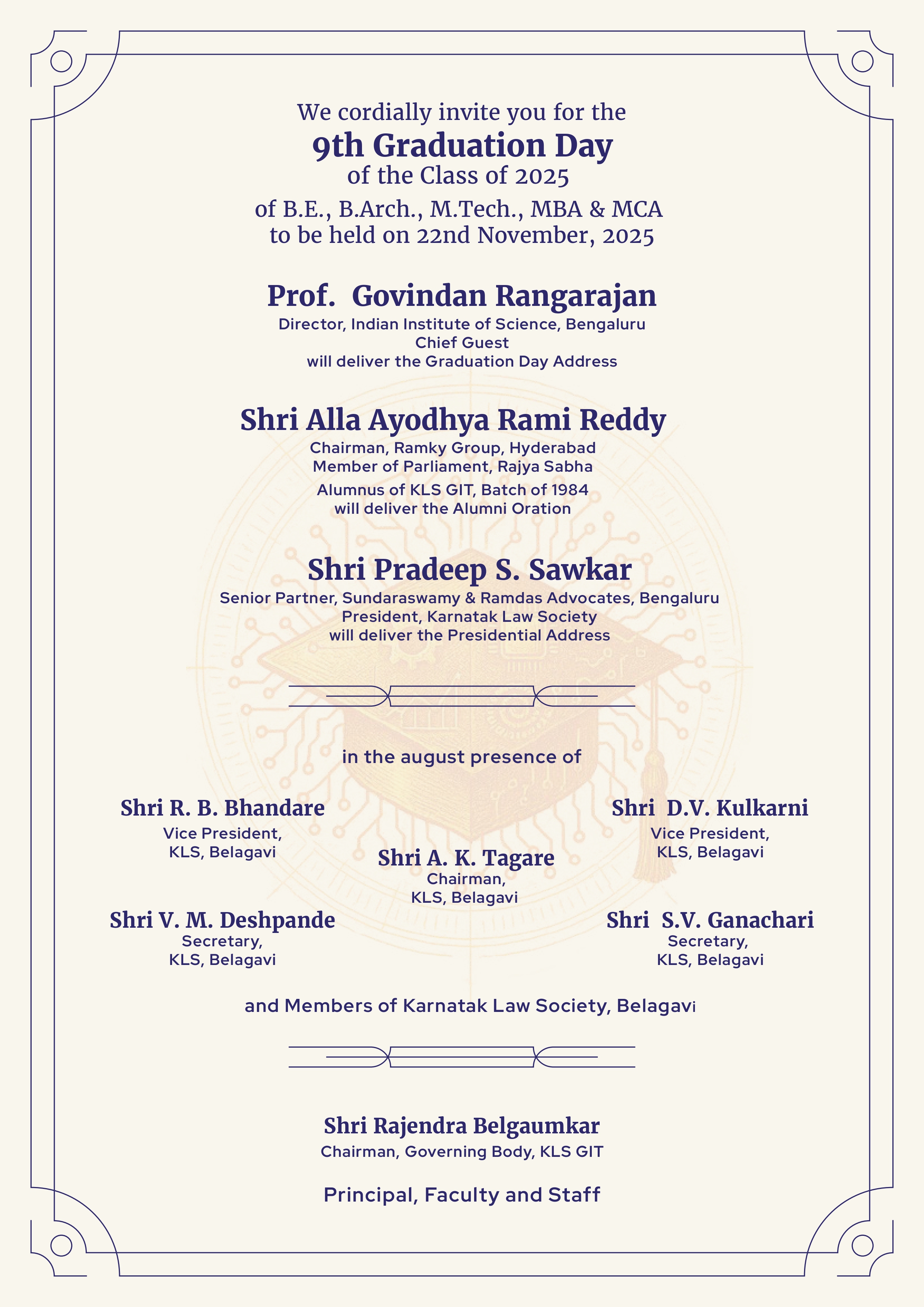It is with deep sorrow that we inform the sad demise of Dr. K. S. Vishwanath, Former Principal of GIT, on 21st August, 2025 at 7.30pm. In his passing, the institution has lost an eminent academician, administrator, and guide whose contributions will always be remembered. Dr. K. S. Vishwanath was not only a visionary leader … Read more