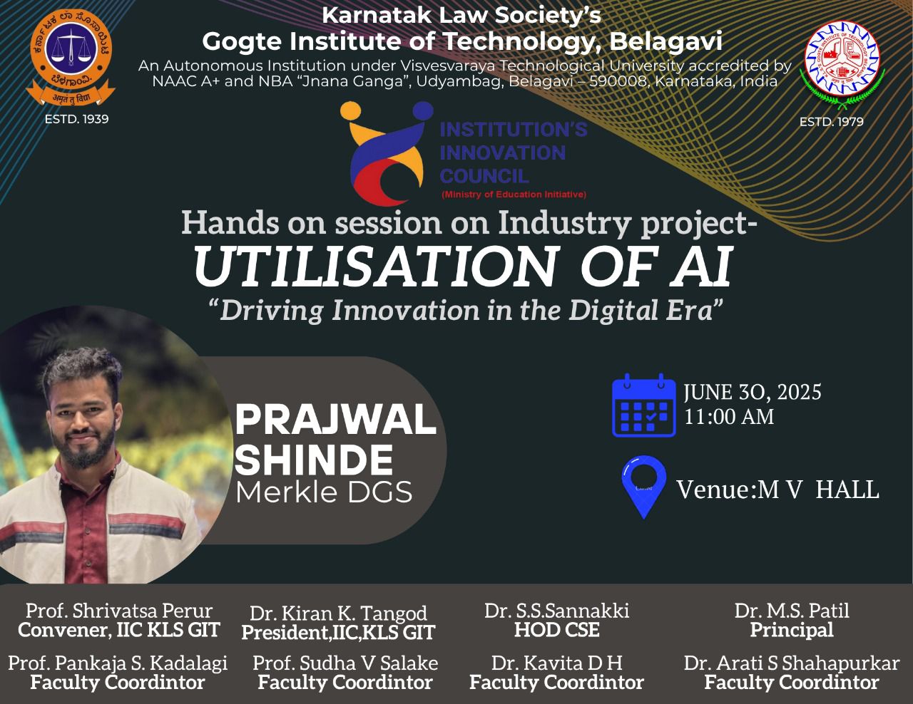Excited about AI? Here’s your chance to experience it live! The Institution’s Innovation Council, KLS GIT invites you to an exclusive hands-on session: UTILISATION OF AI“Driving Innovation in the Digital Era” Speaker: Prajwal Shinde, AI Specialist – Merkle DGSA session packed with real-world applications, insights, and live industry scenarios! Why You Should Attend: Explore how … Read more